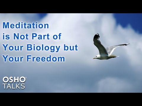 silence shared in words Meditation Is not Part of Your Biology but Your Freedom Meditation is not part of your biology, your physiology, your chemistry; it is not part of the ordinary natural flow. If you want to remain just a human being for eternity, you can remain there. Nature has come to a point of evolution where more than this is not needed by natur 24you are perfectly capable of reproducing children and that's enough. You will die, your children will continue. Your children will carry on the same stupidities that you were doing. Some will be coming into the congregation, into the churches; some other idiot will be giving sermons, and the whole thing will continue -- don't be worried. Nature has come to a point where now, unless you take individual responsibility, you cannot grow. More than this nature cannot do. It has done enough. It has given you life, it has given you opportunity; now how to use it, it has left up to you. Meditation is your freedom, not a biological necessity. You can learn meditation in a certain period of time every day to strengthen it, to make it stronger but carry the flavor of it the whole day.